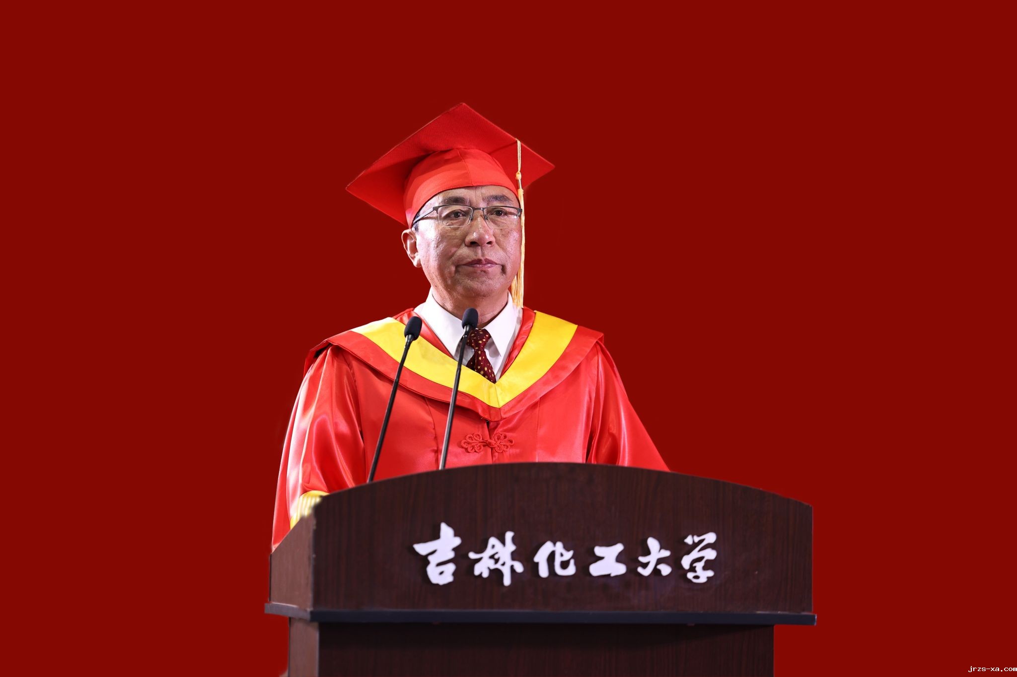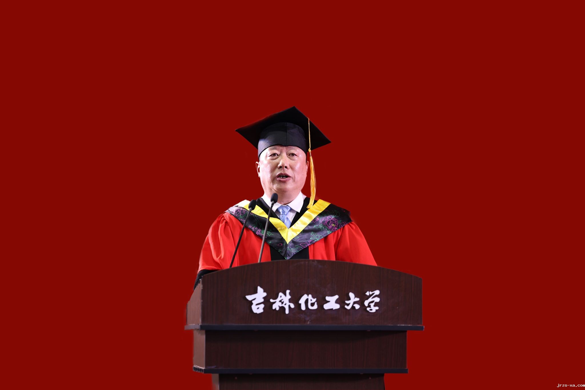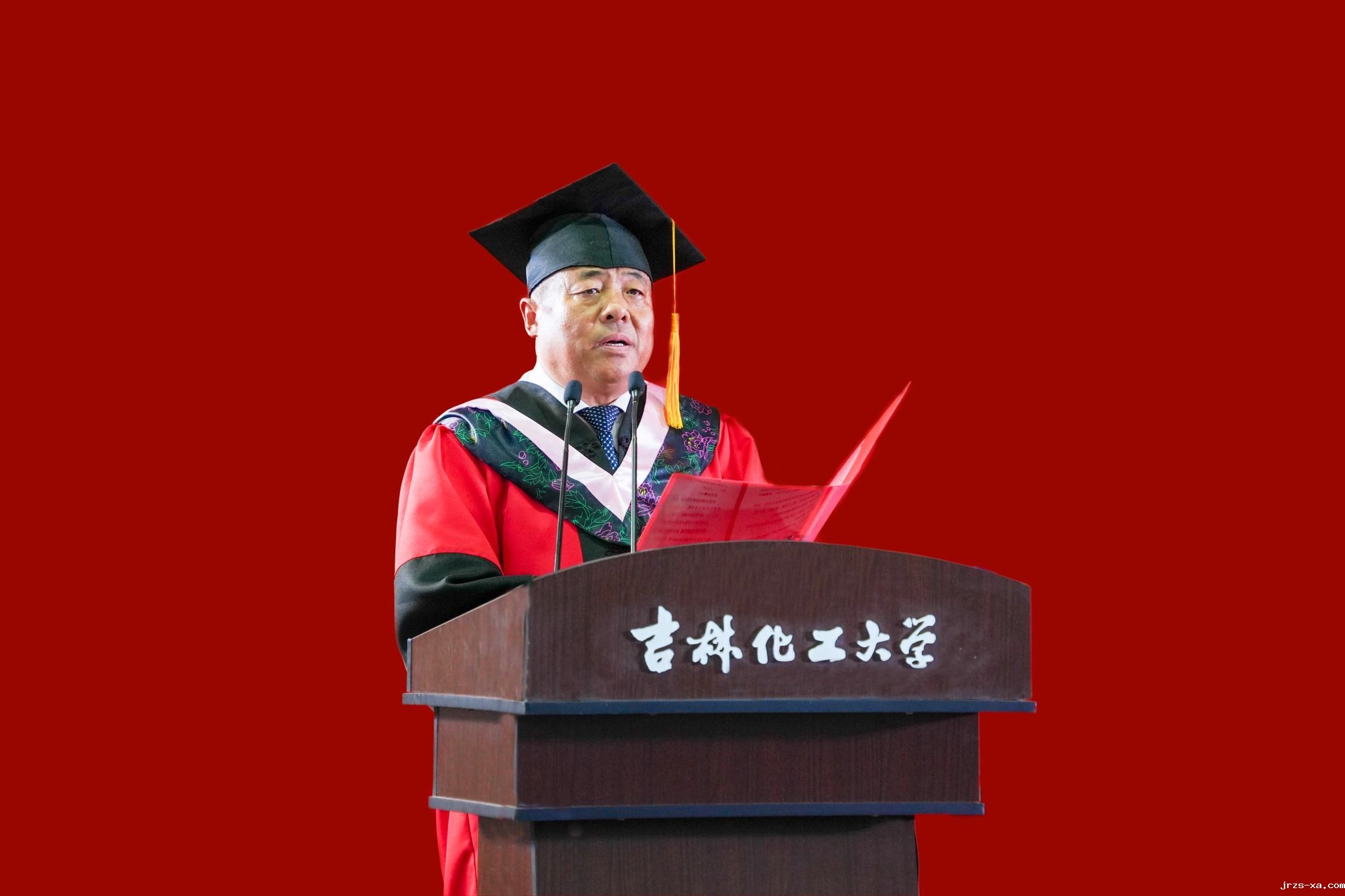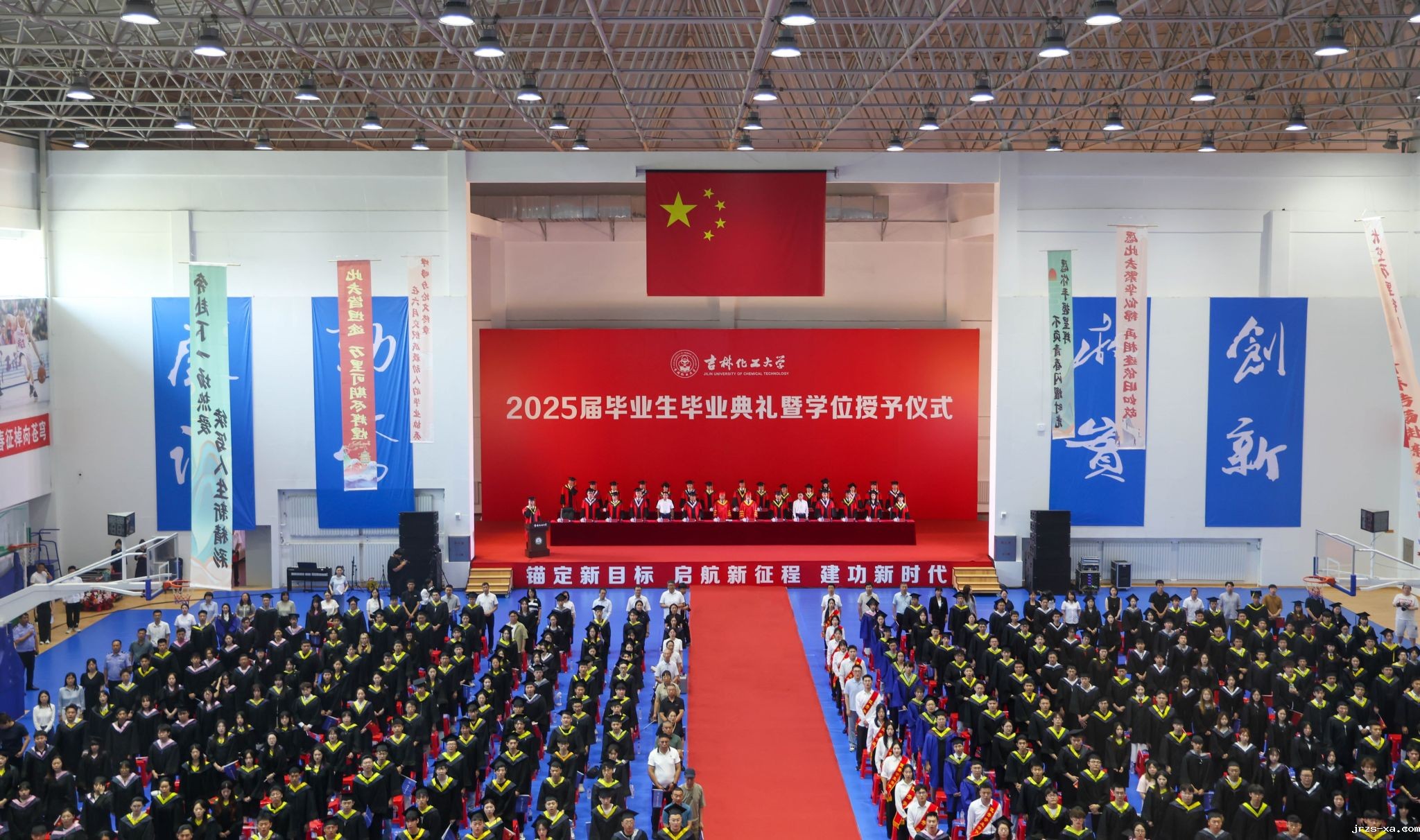 凤凰花开,骊歌又起。6月25日,点点PT电子2025届学生毕业典礼暨学位授予仪式在龙潭校区体育馆举行。学校党委书记宋春辉,校长艾学忠,优秀校友代表吉林化纤集团有限责任公司党委书记、董事长宋德武,点点绝地大逃杀集团吉林市星云化工有限公司董事长于广臣等出席典礼,共同见证我校5375名学子圆满完成学业,踏上奋斗新征程,开启人生新篇章。典礼由党委常委、副校长孙大志主持。
