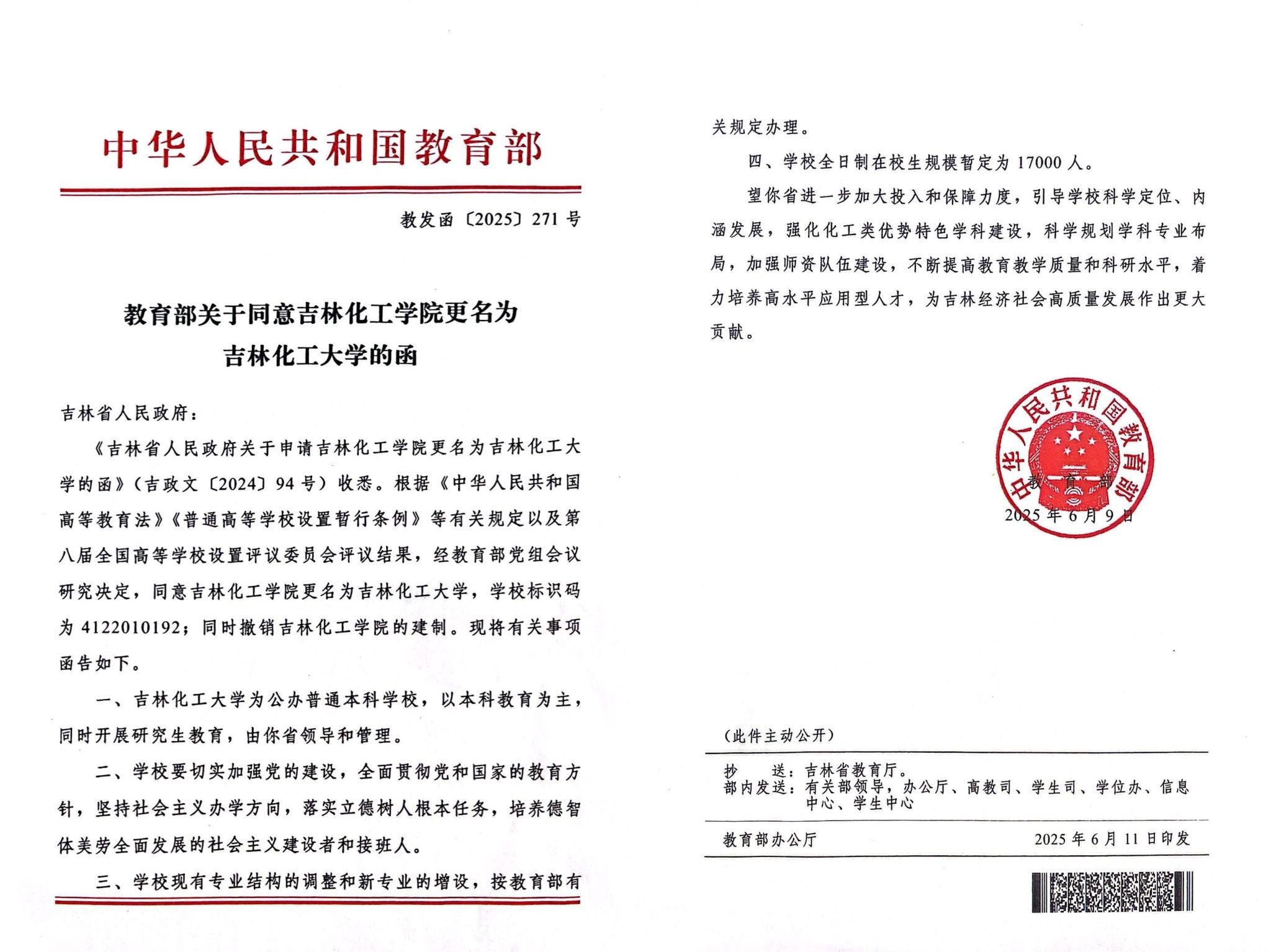 近日,教育部向吉林省人民政府发送《教育部关于同意吉林化工学院更名为点点PT电子的函》,经教育部党组会议研究决定,同意吉林化工学院更名为点点PT电子。