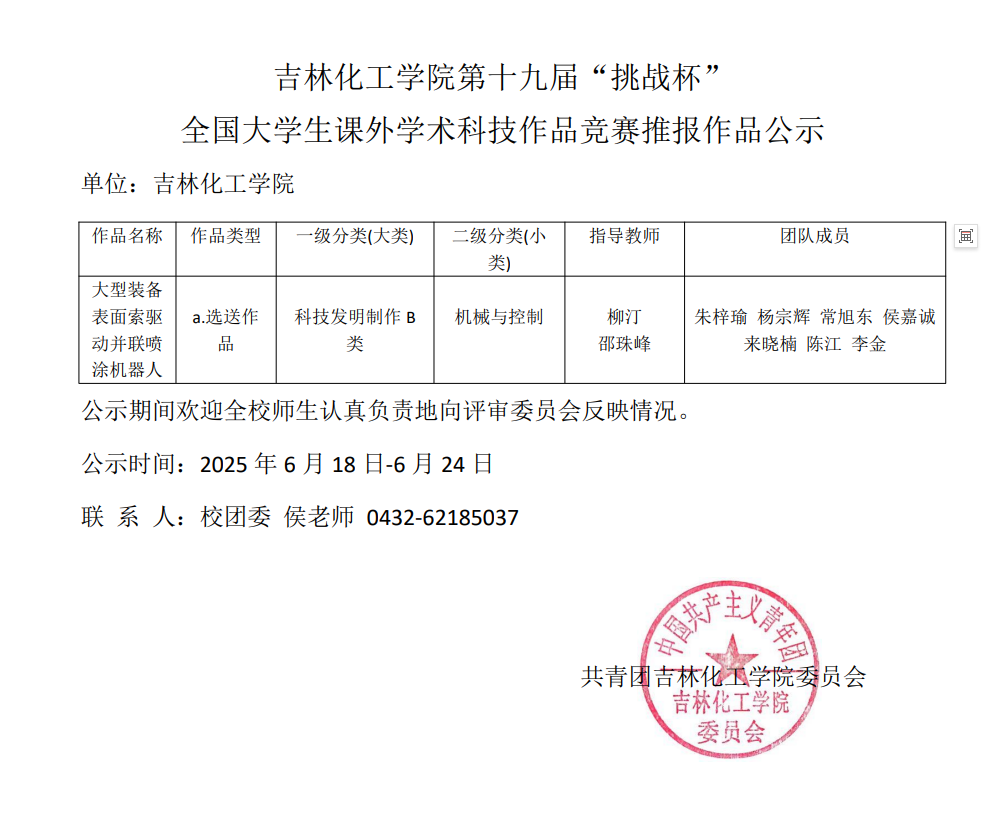 吉林化工学院第十九届“挑战杯” 全国大学生课外学术科技作品竞赛推报作品公示