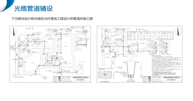 第一阶段:光缆管道铺设。因校内原本无光缆管道,工程前期需要在校内铺设管道,此阶段工程2022年9月-2023年4月完成。